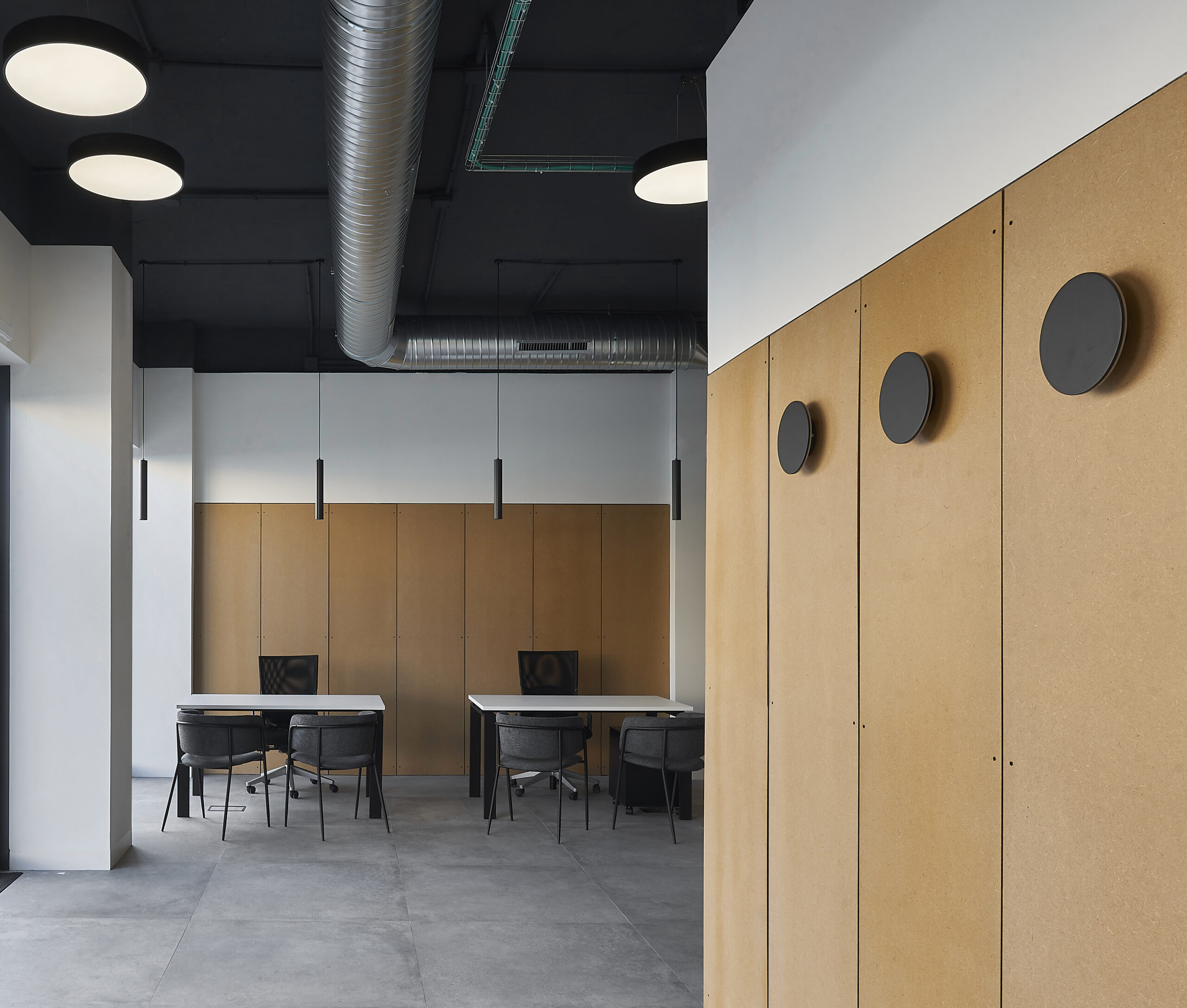 La propuesta interviene en el local creando un lenguaje interior caracterizado por materiales sencillos y tonalidades neutras. Se aprovecha la altura del local para dar amplitud espacial y luminosidad.