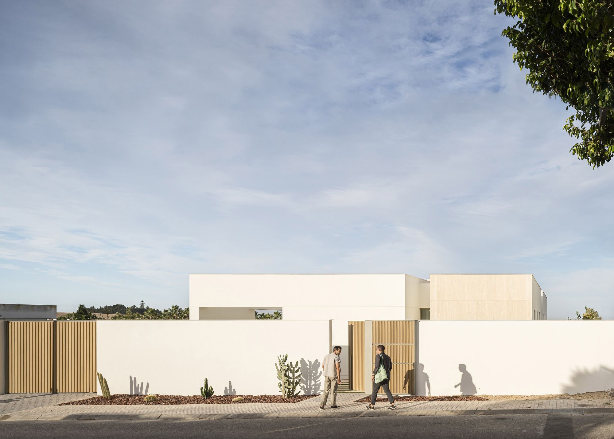En fachada, la diferenciación de usos se traduce en volúmenes independientes, generando entre ellos espacios de luz acotada y conexiones visuales concretas.