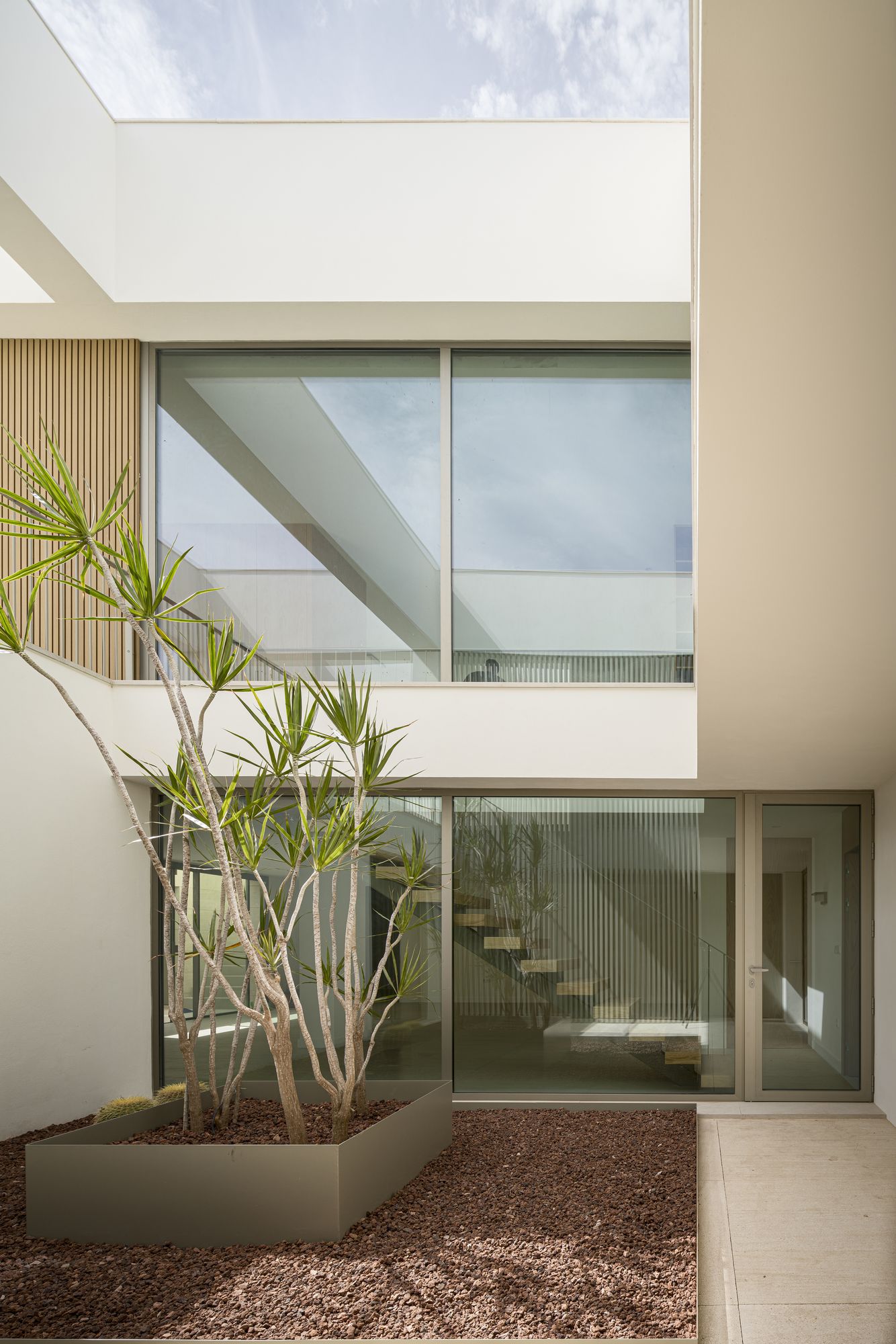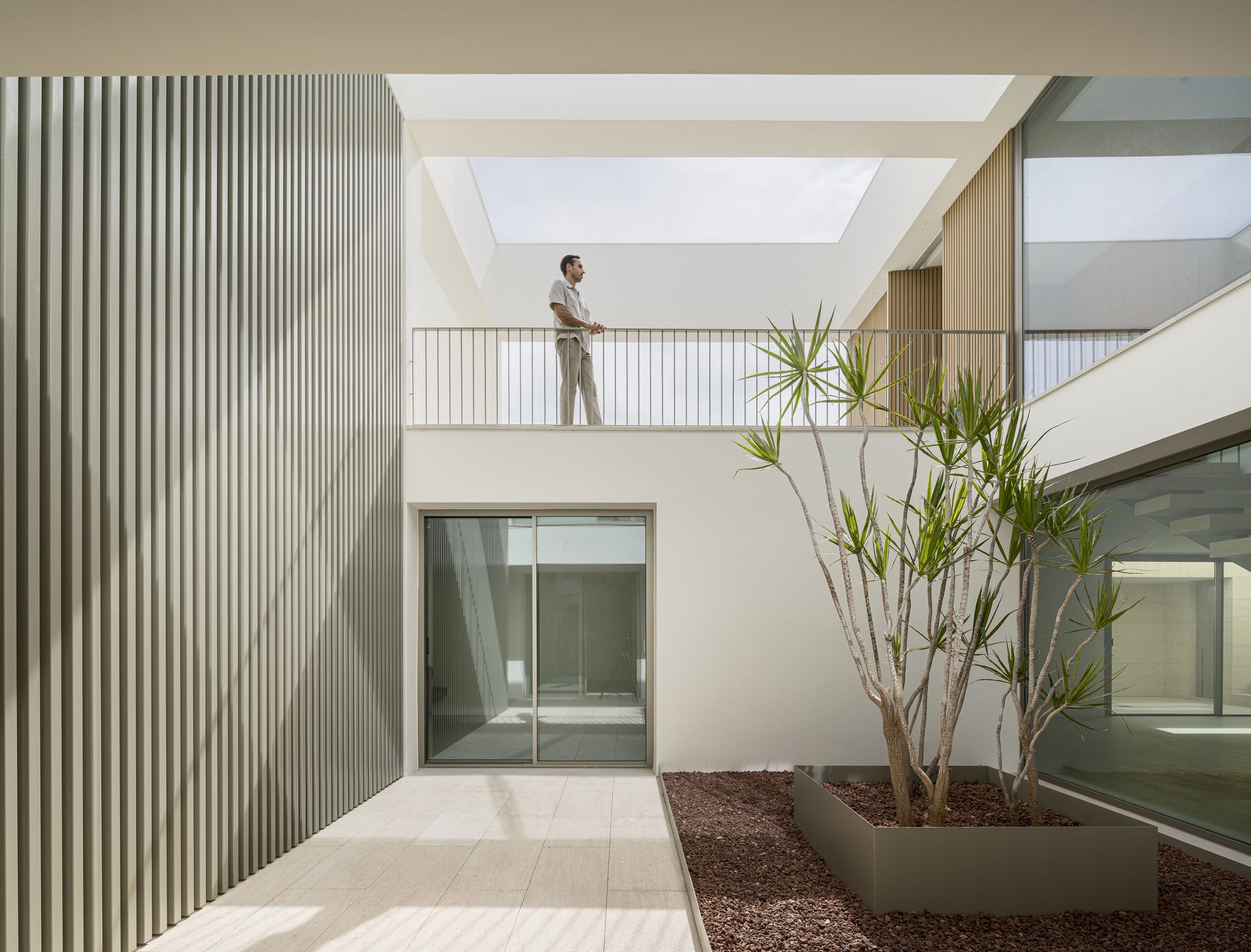 El patio central actúa como elemento de descompresión de la vivienda, propiciando las ventilaciones cruzadas y la iluminación natural; todo ello en busca de una mejora de las condiciones de confort y habitabilidad de forma pasiva.